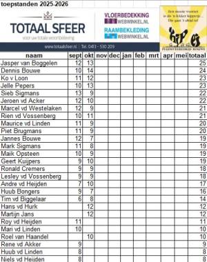 Eindstand Totaalsfeer Toepcompetitie 2024-2025
